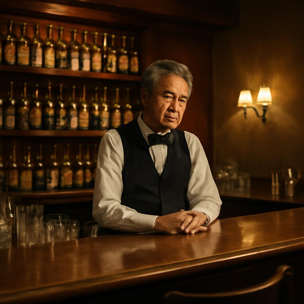 The barkeep – an older Asian gentleman, leaned against the back shelf, casually assessing the emptiness of his section, likely lamenting the crowds that would no doubt descend on his solitude as the lunch hour approaches. Our eyes locked a couple of times as I looked over my laptop – but once my flight had announced yet another delay, the connection between us intensified.